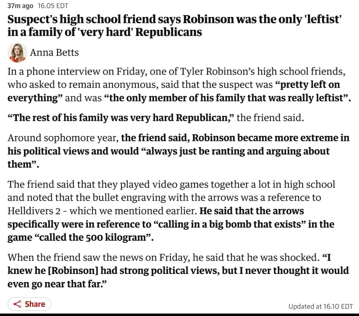 No way. I don’t believe someone who actually knew him. I believe the lefty retards that said he was MAGA cause he was white and had a flag on his shirt.