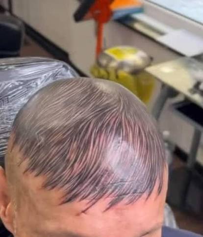 It doesn’t. You look like an insecure bald guy who refuses to accept that you’re bald. Pro tip: People know you’re bald. Guys with a head full of hair aren’t choosing a chrome dome.