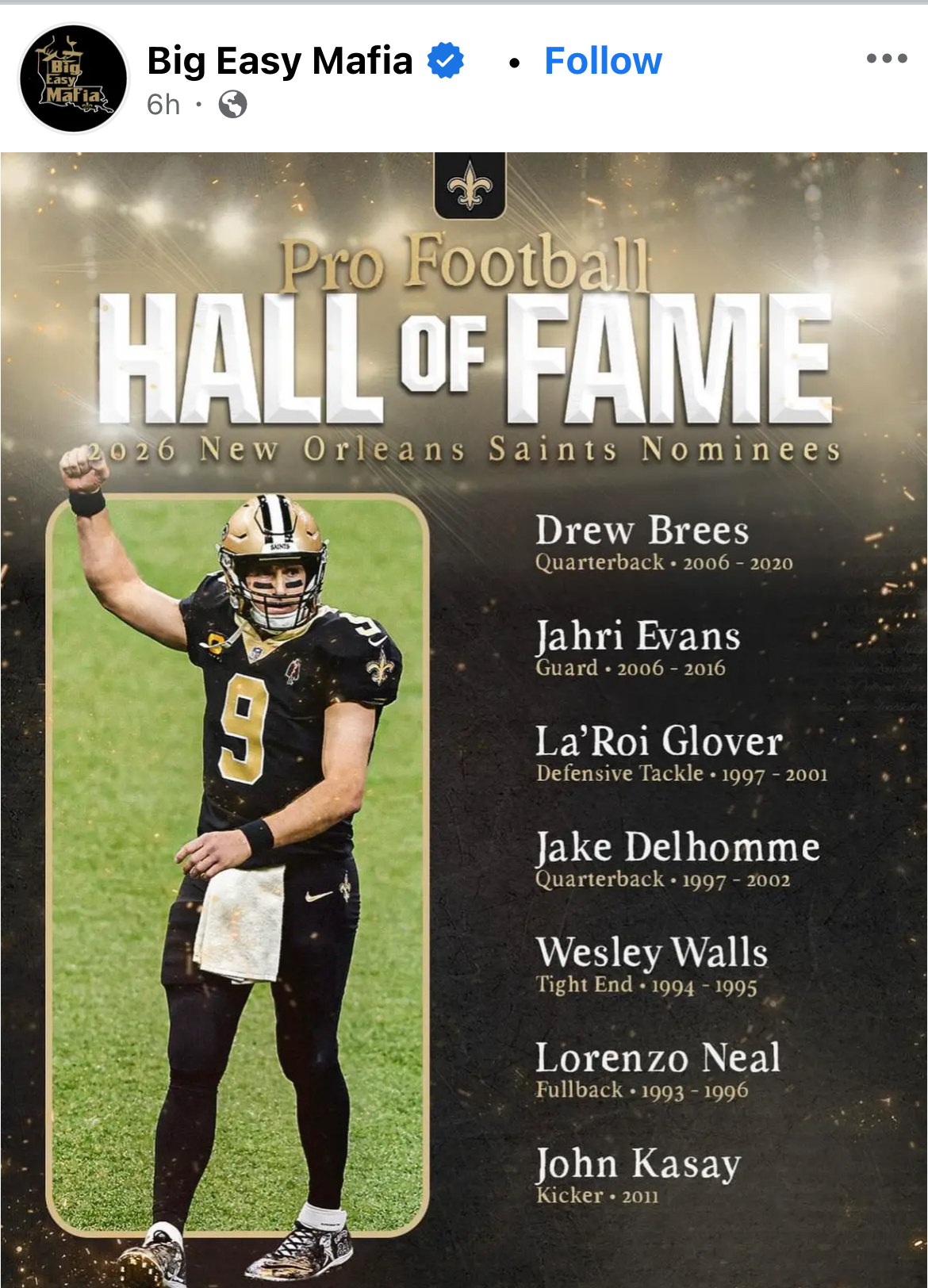Thats cool, but should he be nominated for the SAINTS 2026 HOF class? Yes / no?