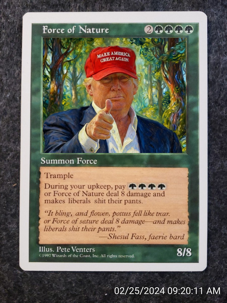 Another one, these are obviously fake, but I've been missing out on Trump meme MtG cards.