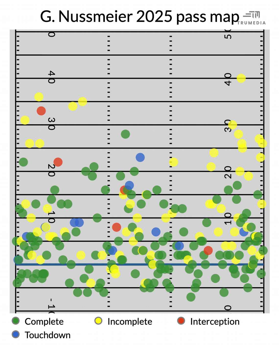 On passes thrown at least 25 yards downfield, Nussmeier is a shocking 1-for-16 this season.