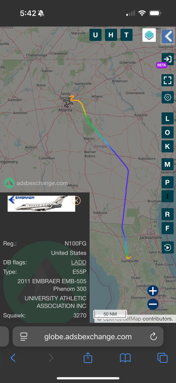 Now the UAA jet is in Atlanta. Apparently, Sexton has an office in Atlanta. Is it going down?