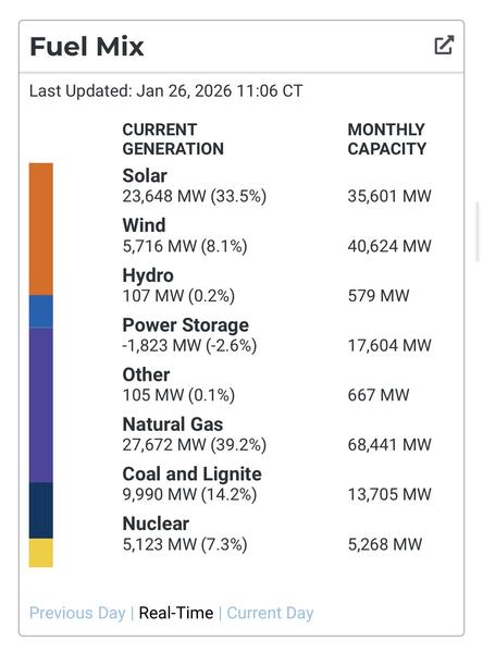 About 42% of the power being generated in Texas today is wind and solar. Interesting how last storm everyone shite on renewable energy not working during cold weather.