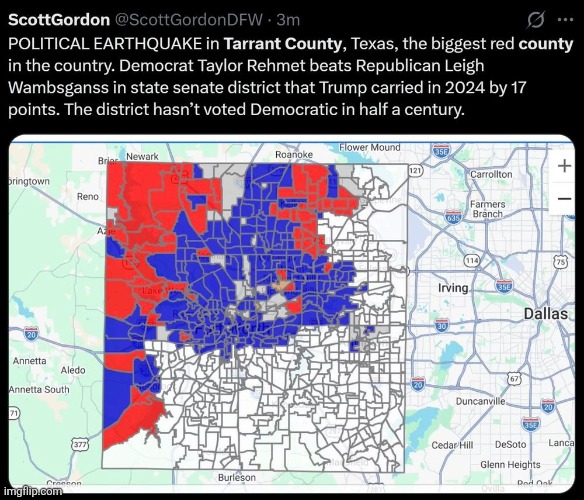 Dems just flipped a Texas State Senate Seat in a county that Trump won by +17