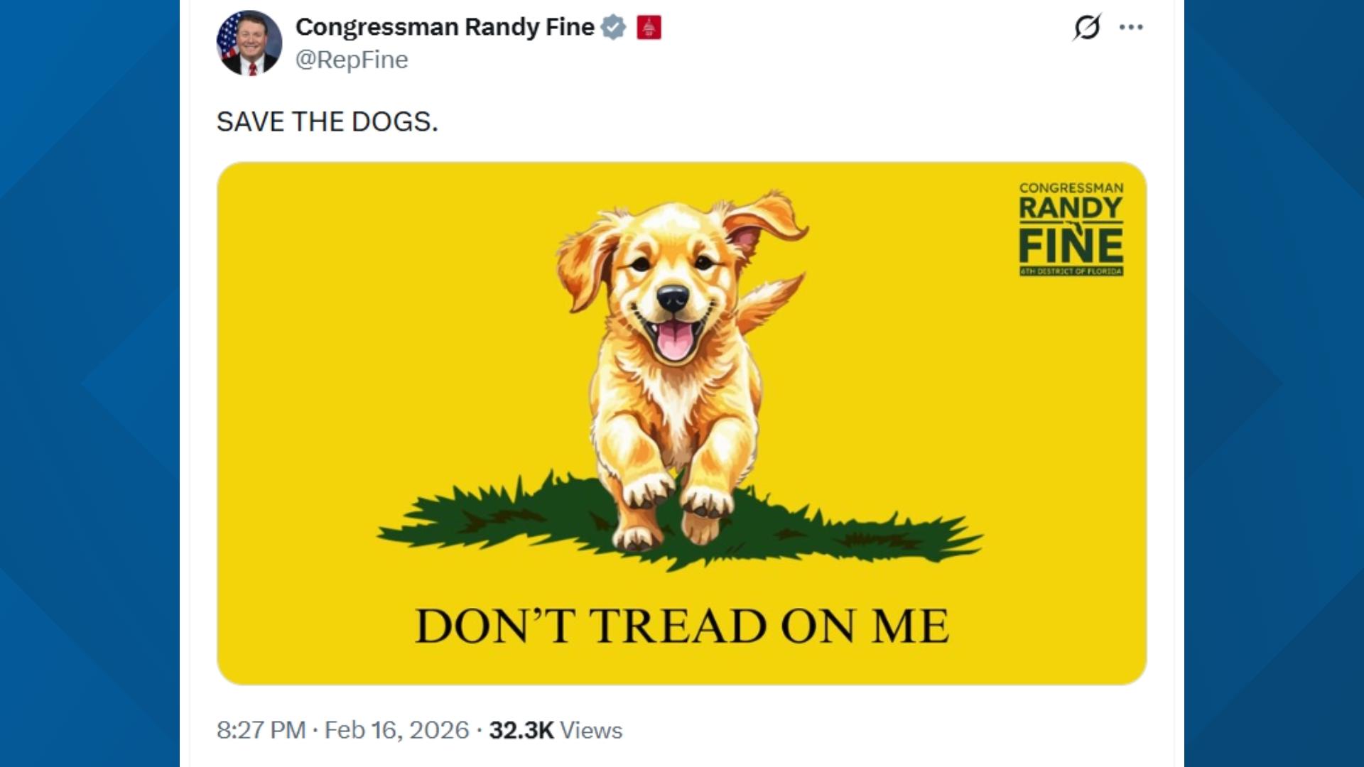 Fine also repeatedly posted images on X of dogs on a bright yellow background over the words "Don't Tread On Me," styled to resemble the Gadsden flag, iconography that dates to the Revolutionary War. He replied to a critical message from broadcaster Piers Morgan by writing that "what is disgusting is a major NYC Muslim leader saying we must give up our dogs because 'NYC is coming to Islam.'"