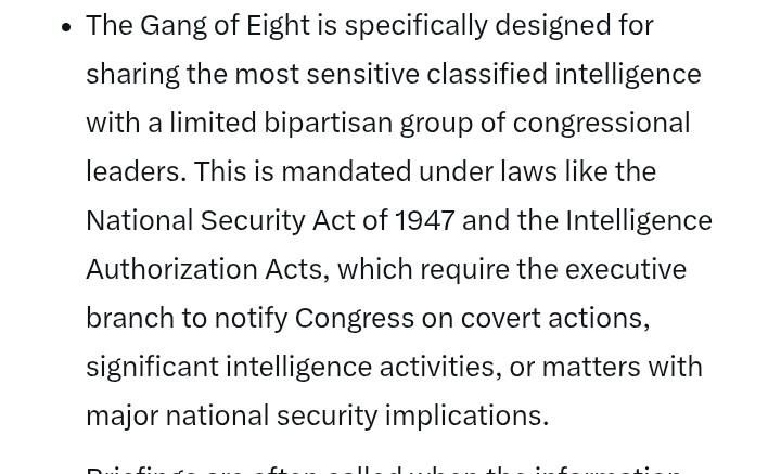 Gang of Eight, for the uninitiated, is leadership and top lawmakers on intel.