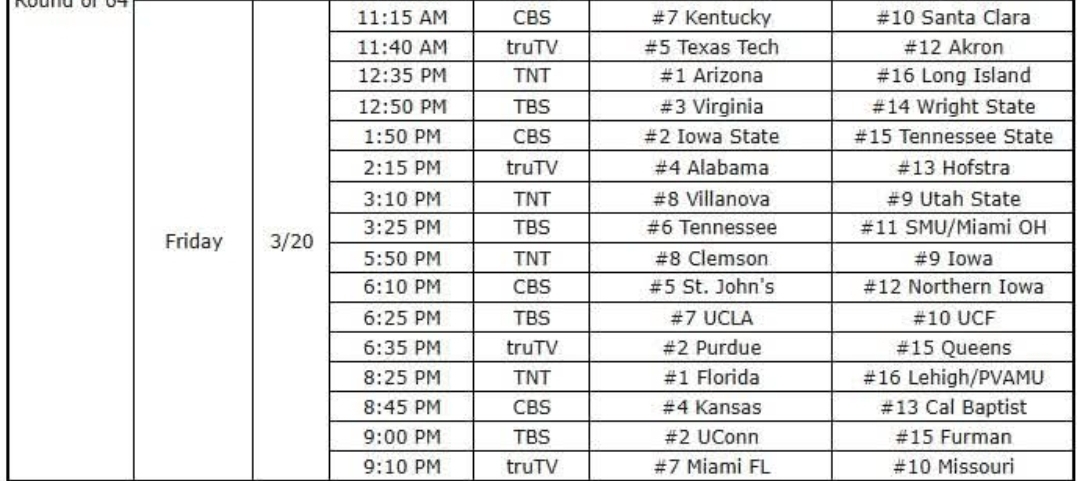 March madness Day 2 cheat sheet