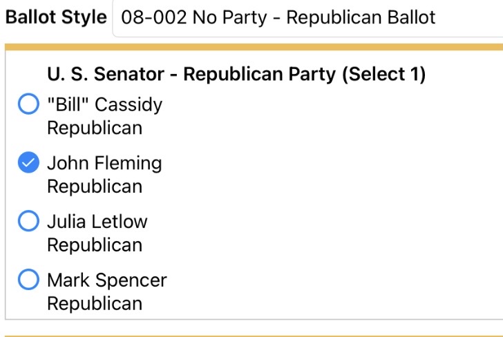 Trump knows Fleming. Had him in his administration and now won't endorse him. That tells me everything I need to know about Fleming. What I don't get is why he DID endorse Letlow, when she's acknowledged that she's a progressive liberal and on the take for stock tips.