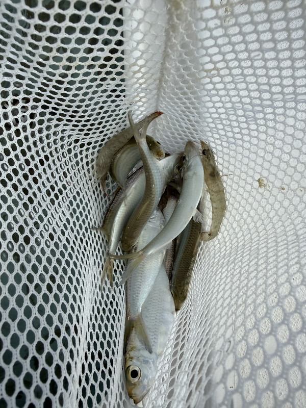 Ran a charter this morning and finally saw some white bait on the flats. They have been out in the gulf due to the cold water and I have not seen a single one on the flats until this morning. We had been fishing about a hour when they showed up. I grabbed some chum while my guys were casting swimbaits and flukes out over the grass and catching some trout and got them going. Grabbed my cast net and got half a live well full. Used them to catch some snook and some trash fish. No reds on them today but they love the white bait