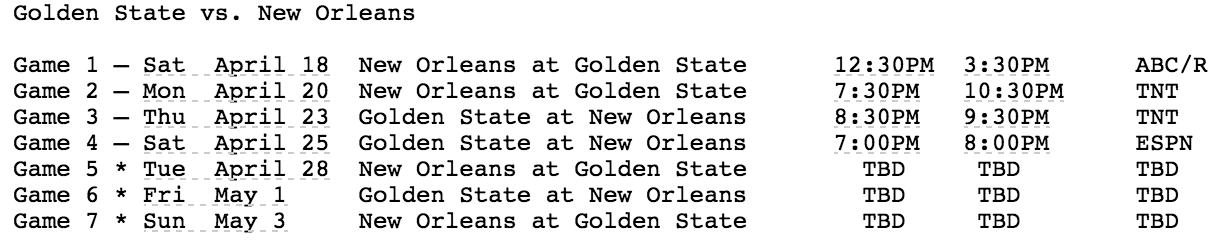 Game 1 Saturday on ABC 2:30 CT (Full Schedule Posted)