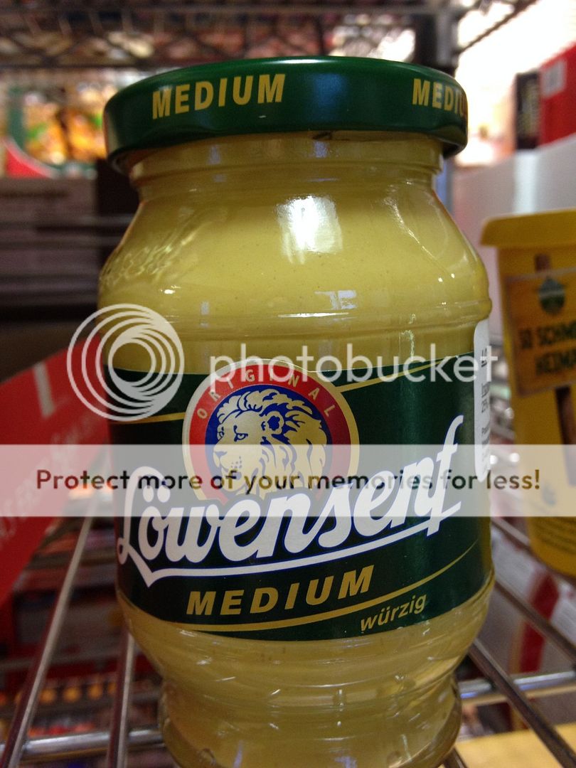 This is the goat mustard, the mild is spicy enough but the hot is sinus clearing so I rotate. Thomy also makes a great deli mustard. I pick them up at our local Eastern European butcher