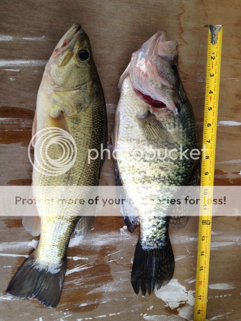 ETA: On average, contrary to what I thought before I started keeping records, sac-au-lait weigh less per length than bass do.
