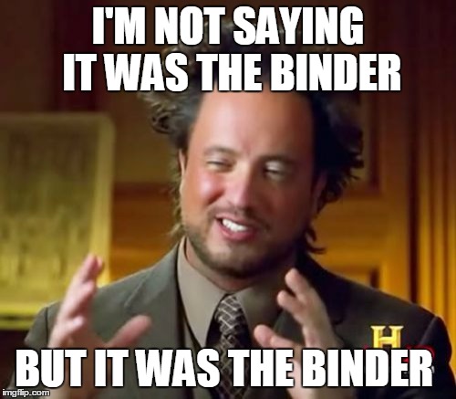 Binders are so German. We might only be on day 3 of the Binders era, but it has gotten about 3 months of airtime. That is all.