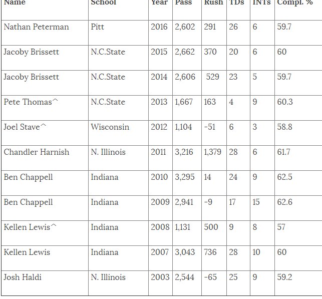And even as bad as the passing was, Montee Ball still won the Doak Walker that year.