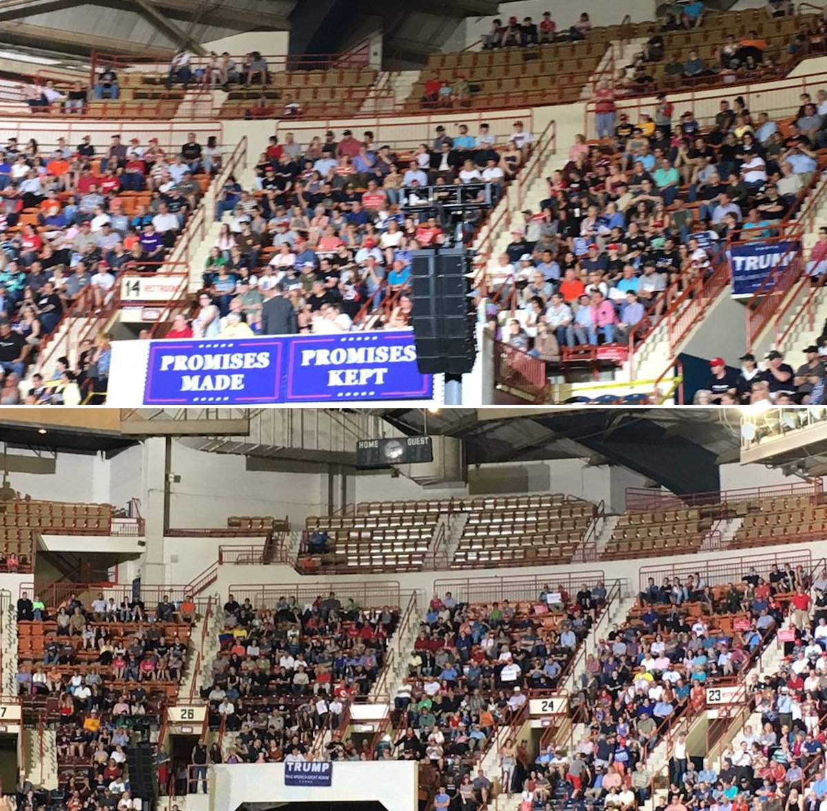 The rally I went to in Louisville was at capacity but had empty seats at the very top