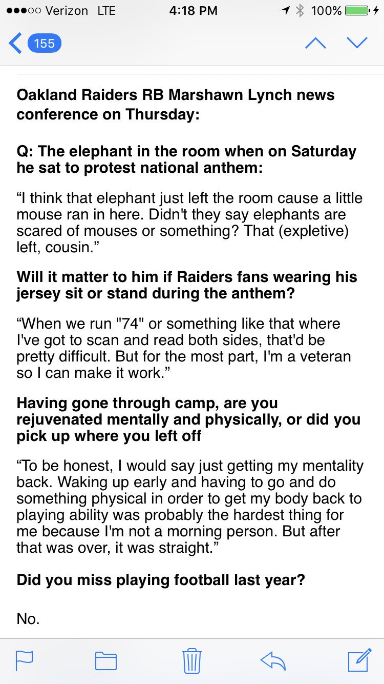 Marshawn Lynch talks about that "Elephant on the Room"