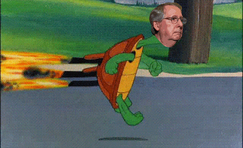 What has happened that turned Senator Turtle into Cocaine Mitch? Did I miss something? The guy is on fire.
