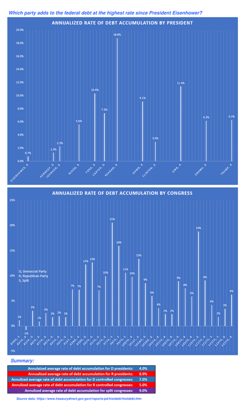 Annualized rate of debt accumulation by president and congress since Eisenhower.