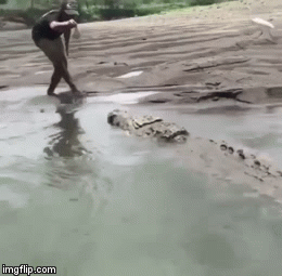 I kept watching that gif waiting for the Croc to just eat the man instead.