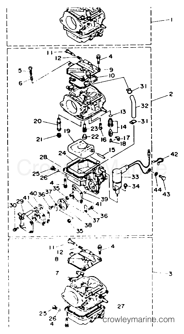 Take the bowl and float off the carb. Remove and clean parts # 20-23