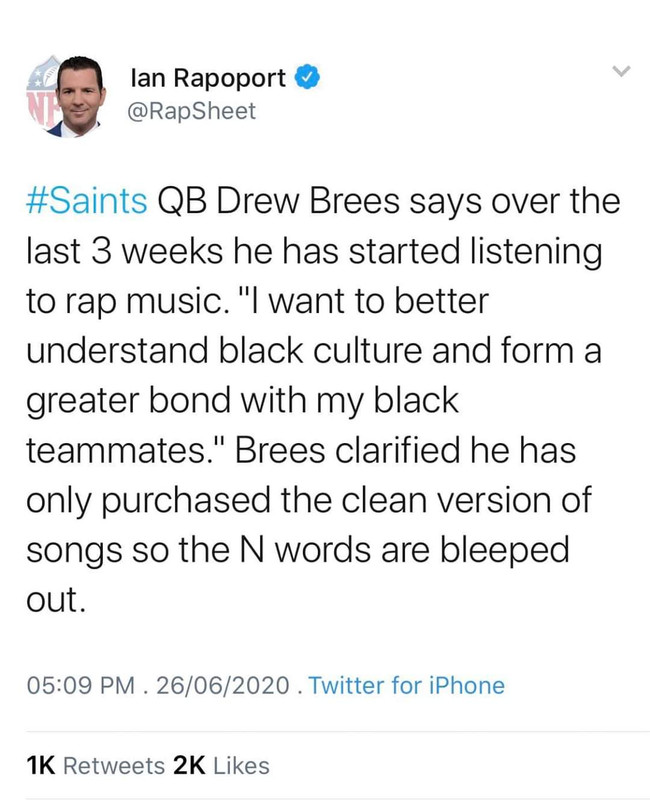 How can you spend as long as Drew has in the NFL and not have picked up a little sumpin' sumpin' about black culture? This is like one of those shitty hollywood race movies. Next they're gonna put a do rag on his head, teach him to dance and then he'll save a school in the ghetto.