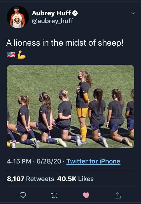Has she been cut yet? Or forced to retire from the team? I can’t imagine MSM letting her get away with having her own thoughts and morals.