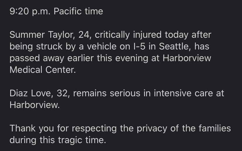 Update 1 Dead Vehicle Hits 2 Seattle Protestors On I5 Freeway