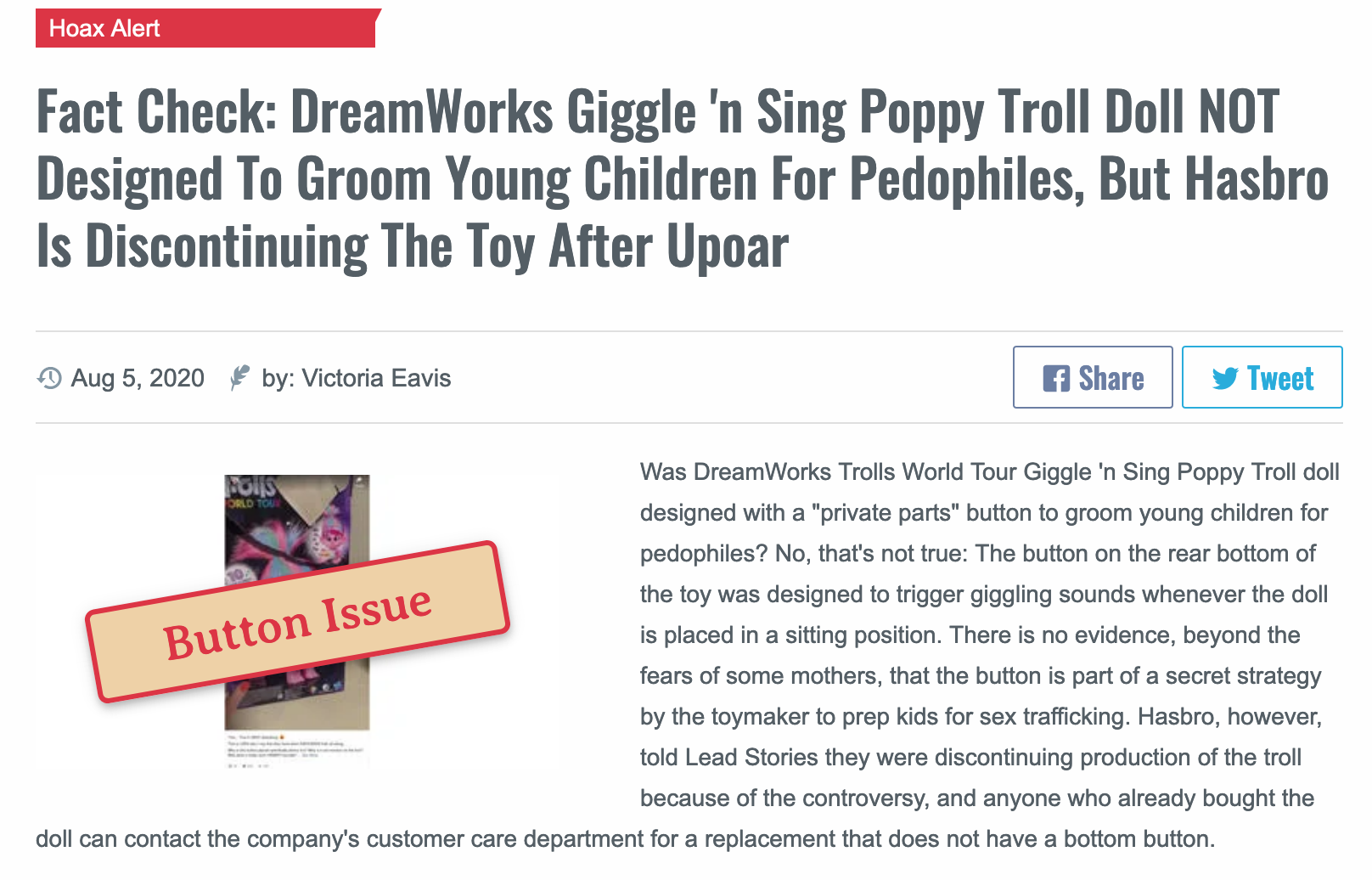 Hasbro Pulls Trolls Toy Because its Grooming Kids for Pedophilia