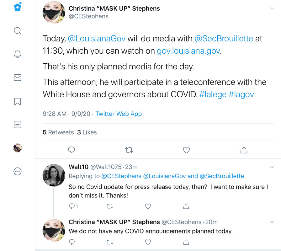 LDH provides one daily update each day at 12PM CT except on Saturdays.