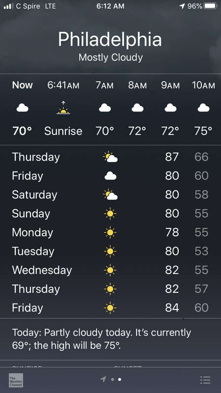 I’m in very south central Louisiana — I’ll take 70-75 at this point.