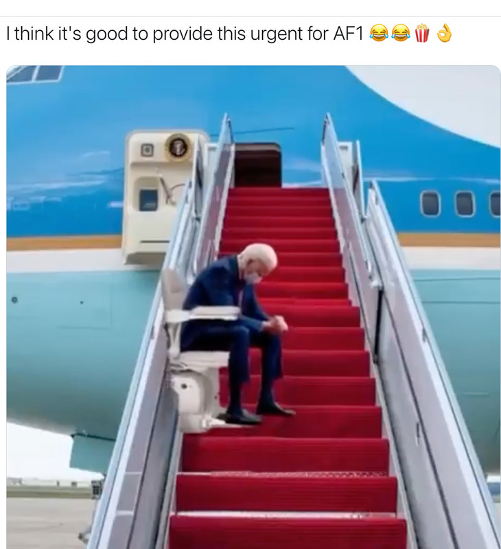 Stumbling, bumbling and fumbling I’m glad someone opened the door on the right if not he might have thought he was supposed to fly the plane to Fla. to pick up the president.