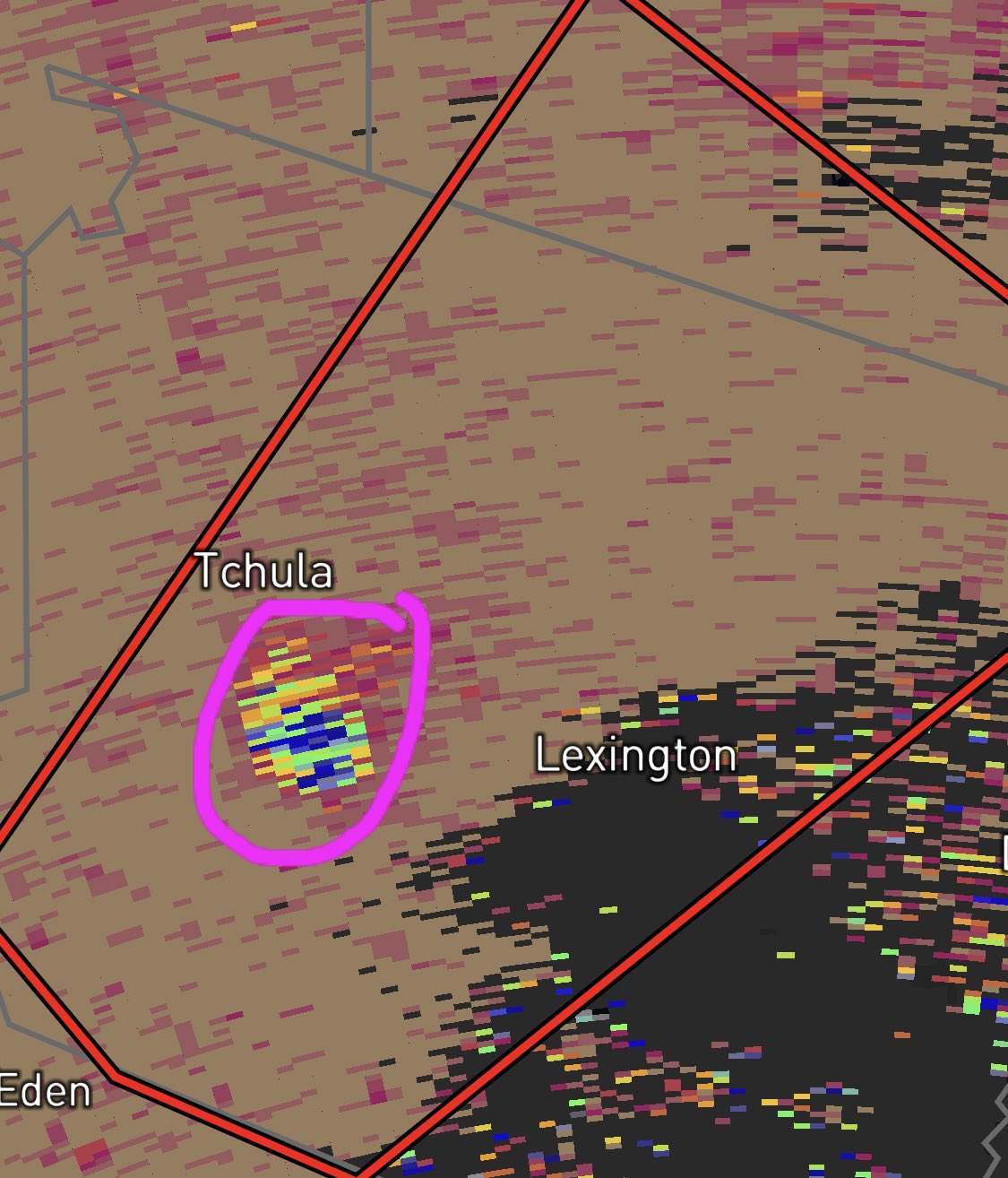 Damaging #tornado is passing just south of Tchula, MS! Destructive tornado indicated by radar. Tornado will pass just north of Lexington MS! Time is 608 pm. Tracking on the