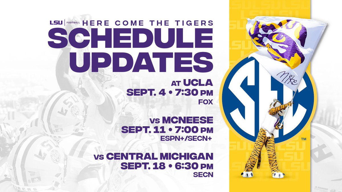 TV and Time Slots for games against UCLA, McNeese and CMU