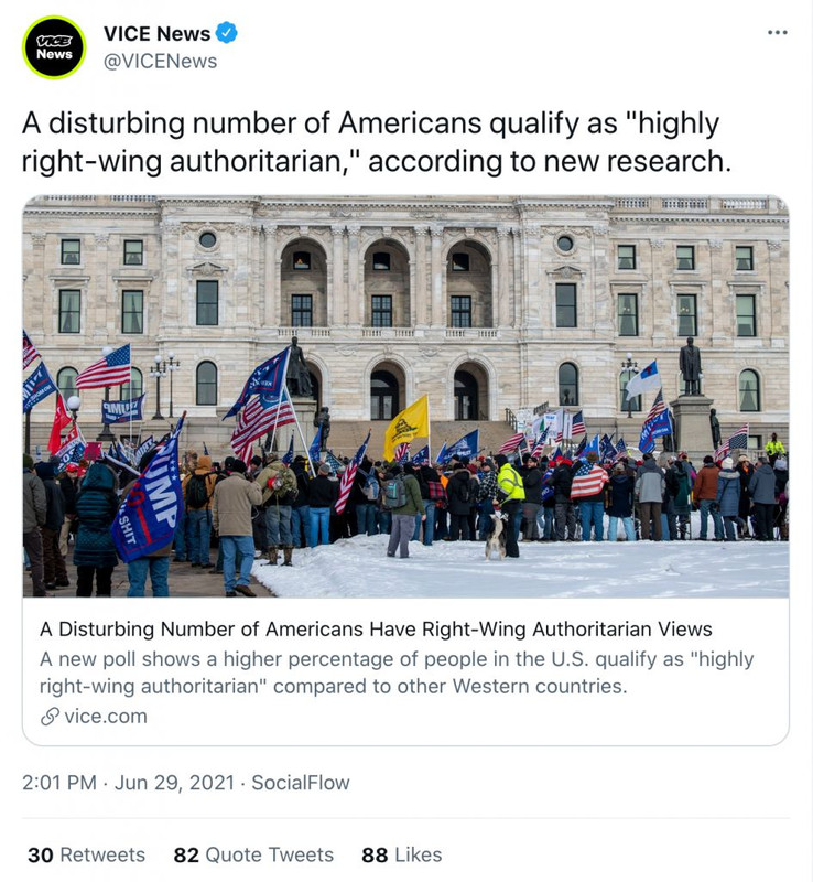Vice News: A disturbing number of Americans qualify as "right wing authoritarian"