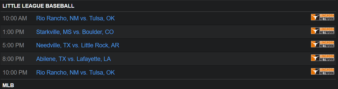 ESPN’s coverage of Little League Baseball begins August 5 with the first game of the Southwest Region tournament. ESPN, ESPN2, Longhorn Network, ABC and ESPN+ will televise all 90 region tournament games showcasing Great Lakes, Mid-Atlantic, Midwest, New England, Northwest, Southeast, Southwest and West Region action