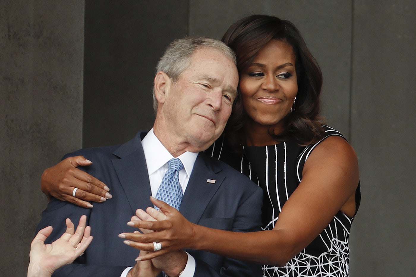 He should reminded every time he’s in public. It’s disgusting that people were telling that guy to sit down. The Bush’s were the worst republican presidents in history. Screw them
