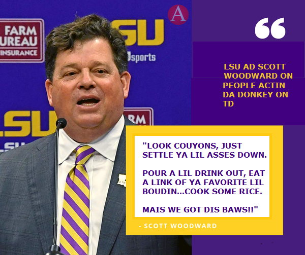 This makes me feel even better. I assure people for a living and can tell you the last thing you want to do is make someone feel good when you know the eventual news is bad. I think we can take Scott at his word at this late date. Trust your AD, this is why we brought him to LSU