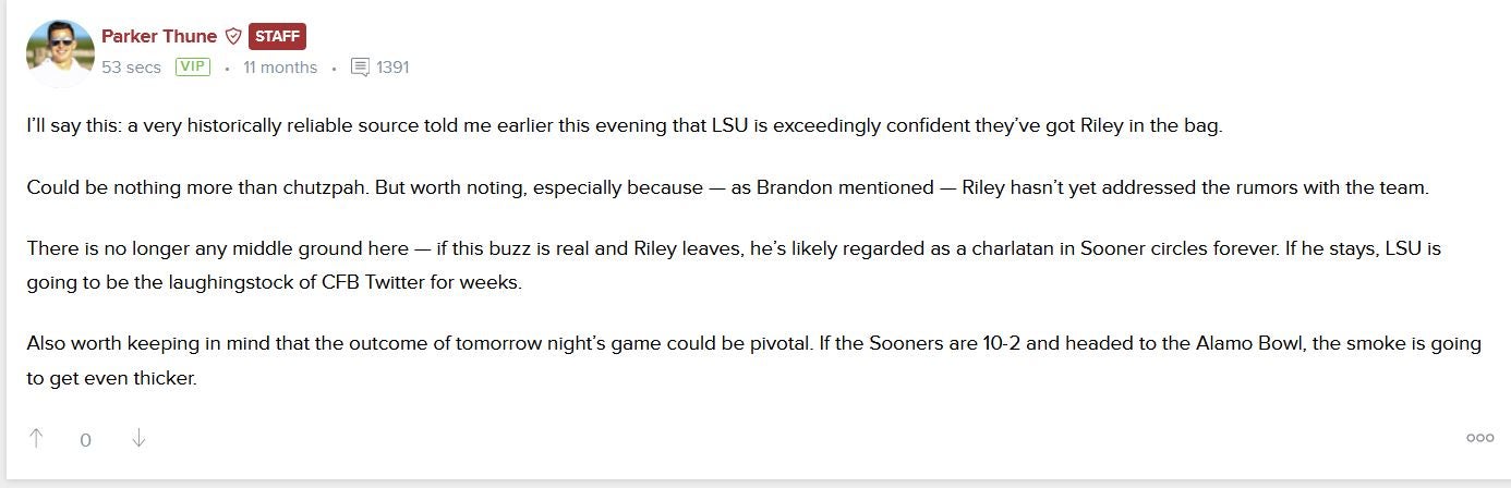 OU247 Parker Thune: A reliable source told me that LSU thinks it has Riley in the bag