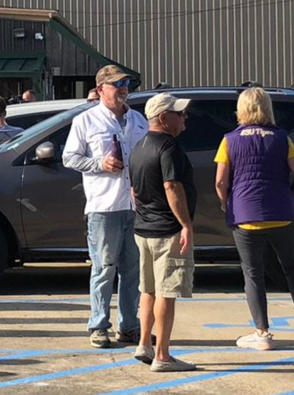 That looks like an FRC Jacobs Field Services shirt. Ole baw left Exxon early to greet Coach. True baws look for any reason to leave work early and drink beer