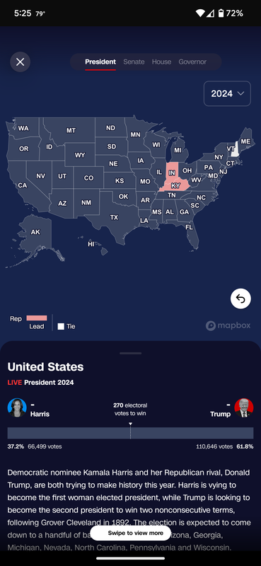 MSM will (rightfully so) wait until all polls close in the state before declaring winners... but yes they will go Trump & Vermont will go Kamala at the top of the hour