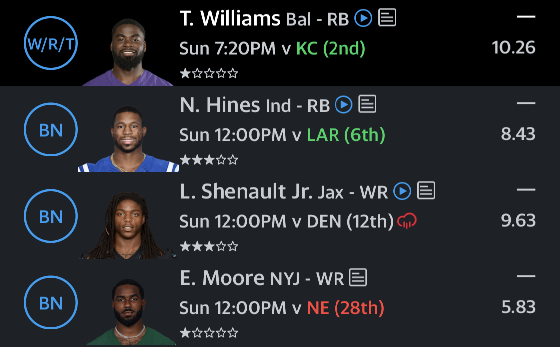Burrow (vs Bears), Ben (vs Raiders), Winston (vs Carolina)
