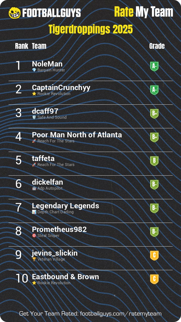 We’ll see how they shake up as the year goes on. Every year my team is usually rated almost dead last post draft and idk why