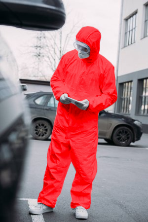 I’m not near my PC/Adobe so I can’t make this simple adjustment. Can someone please fark this hazmat suit to the red below while maintaining the “texture” instead of just “flat color change”? I’m thinking a simple “mask” and “overlay” (with the transparency lowered, obviously)