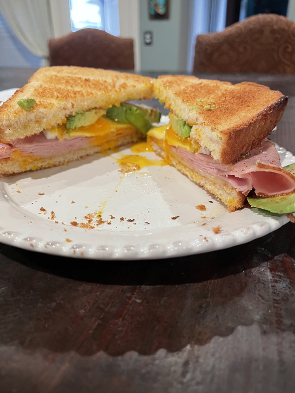 My breakfast this morning- ham egg & cheese with avocado