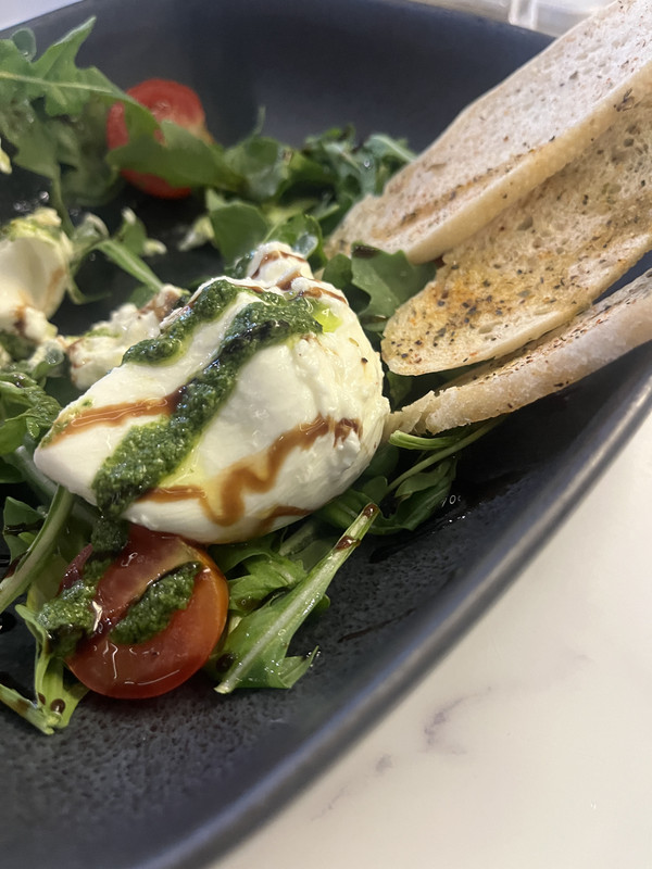 Their Calamari was very lightly fried with a really good marinara sauce. My wife had the Burrata Caprese salad which was delicious.