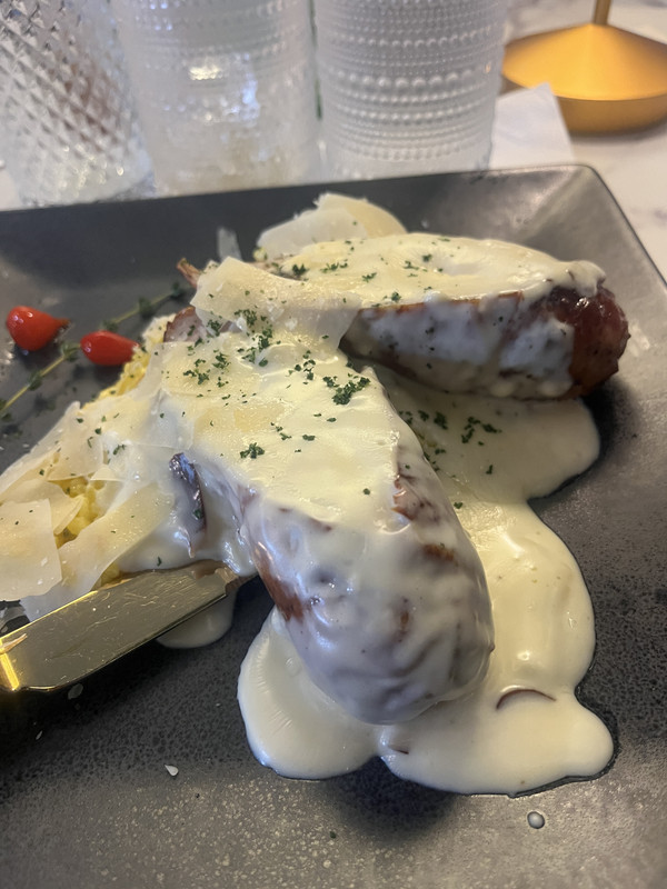 For my entree, I had the prosciutto wrapped stuffed chicken breast with the smoked Gouda cheese sauce. It was a great flavor combination.