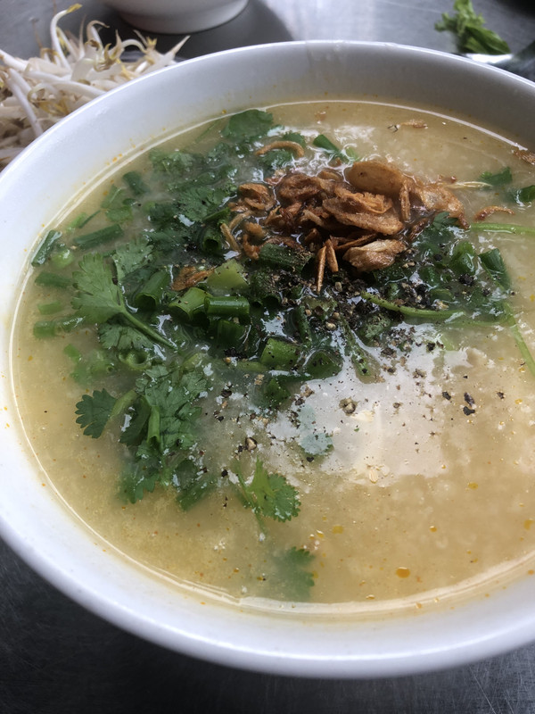 Got some chicken congee/porridge for breakfast. What would make this better would eating it outside in mid 50s weather. Eating it during the summer makes you feel like you just got out of a sauna when finished. But it’s so good that you can’t stop eating.