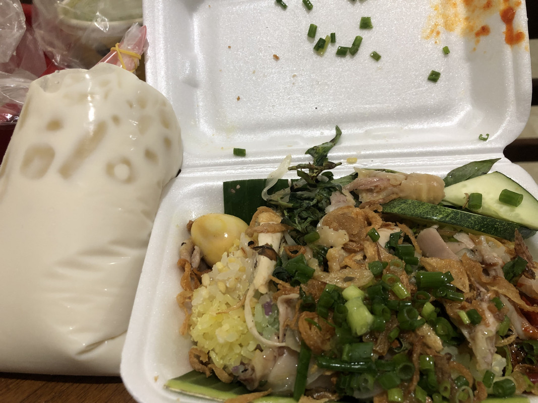 Breakfast this morning with 2 kinds of chicken sticky rice.