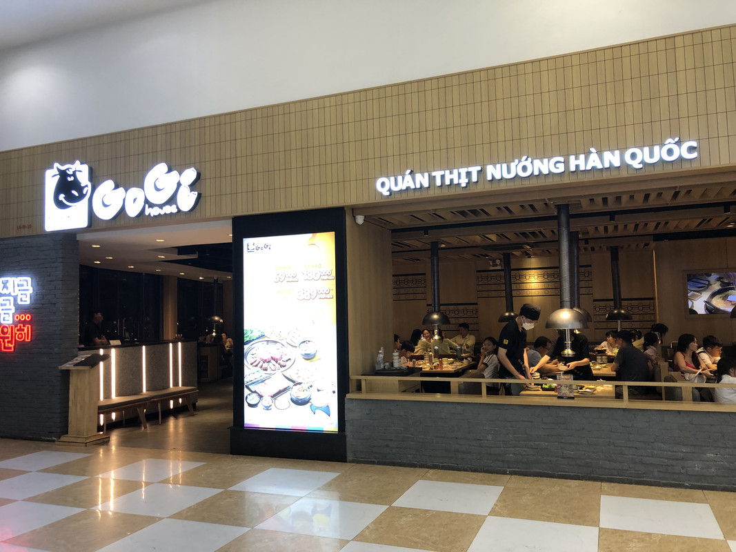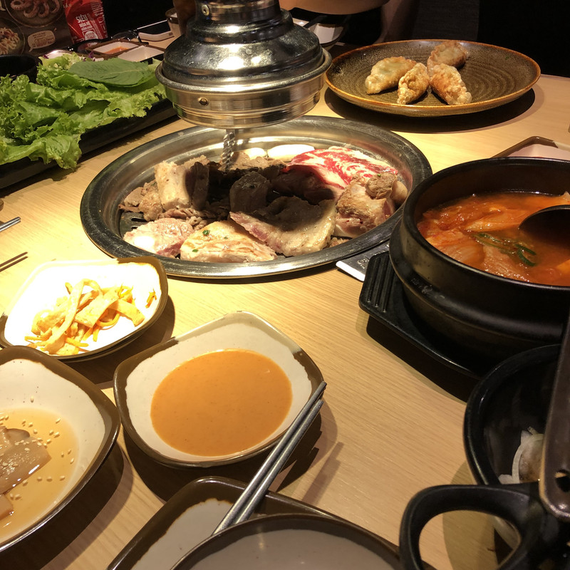 Ordered 2 plates of meat, Kim chi soup, fried dumplings, and fried sushi rolls. I was surprised they used charcoal to cook instead of gas. 1.1 million($43).