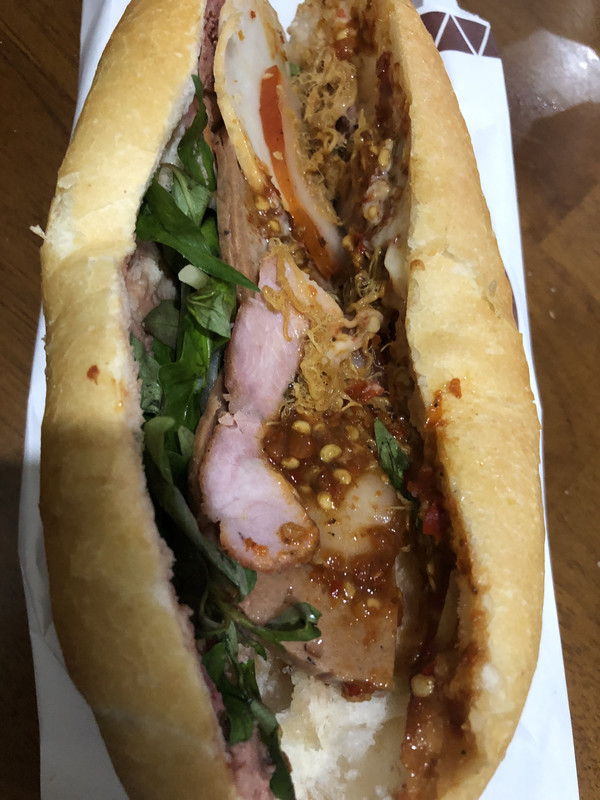 On the way home , pick up a combination banh mi(#10) at a popular local vendor. So much going on with this banh mi and they all go well together, S-Tier.